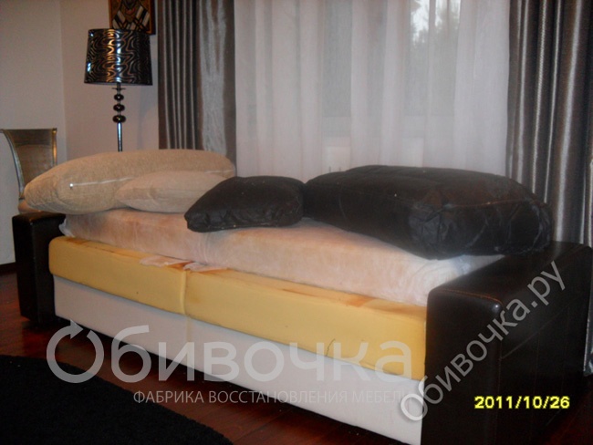 Замена обивки и ремонт механизма дивана «Москва». Из экокожи во флок на флоке.