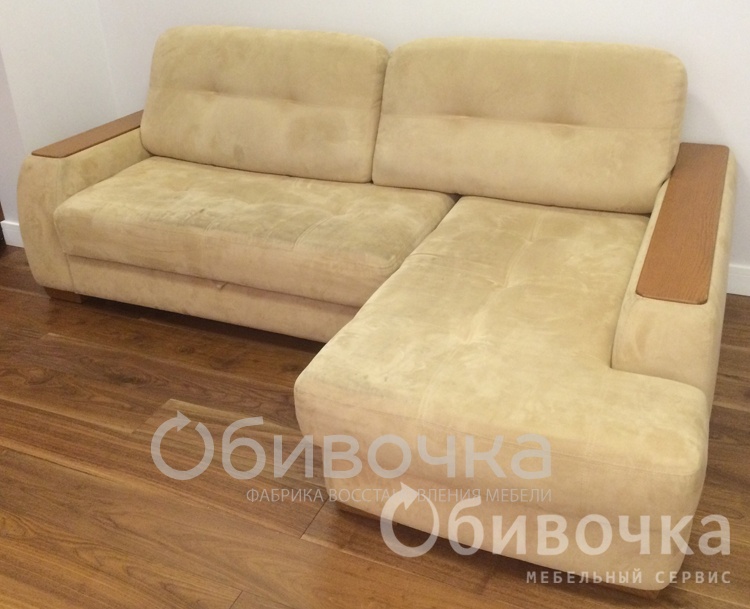 Восстановление углового дивана фабрики «МЦ». Перетяжка искусственной замшей и полная замена наполнения