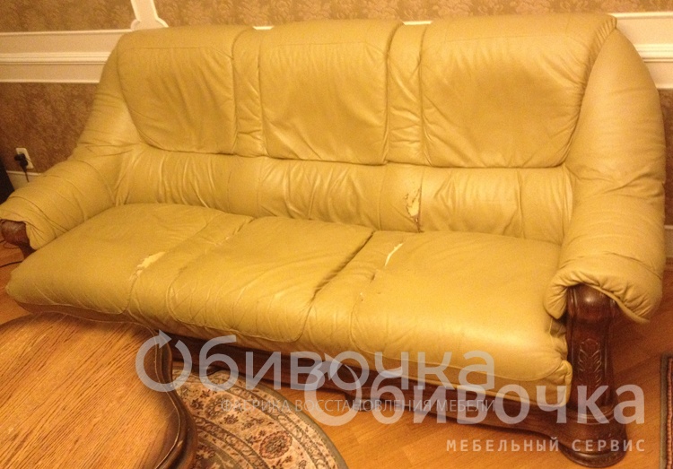 Перетяжка кожаного дивана голландской фабрики. Ремонт каркаса и замена наполнителя