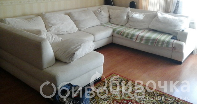 Восстановление углового дивана фабрики «МЦ». Перетяжка искусственной замшей и полная замена наполнения