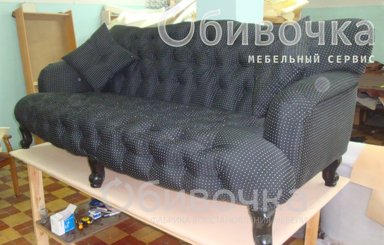 Реставрация антикварного дивана с восстановлением каретной стяжки