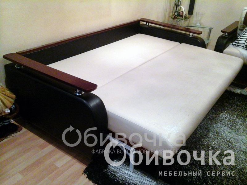 Замена обивки и ремонт механизма дивана «Москва». Из экокожи во флок на флоке.