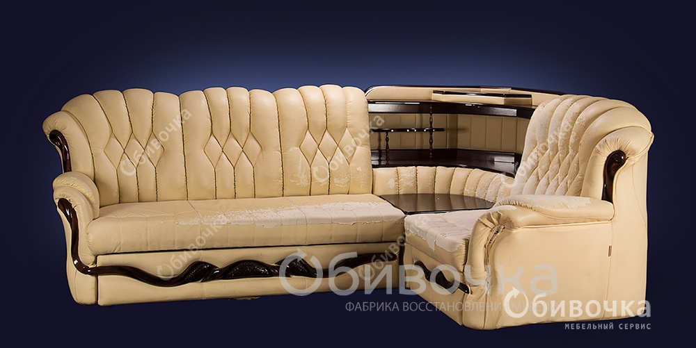 Перетяжка кожаного дивана голландской фабрики. Ремонт каркаса и замена наполнителя