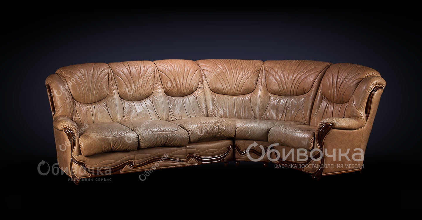 Перетяжка дивана «Виктория» фабрики «NIERI» в итальянскую анилиновую кожу