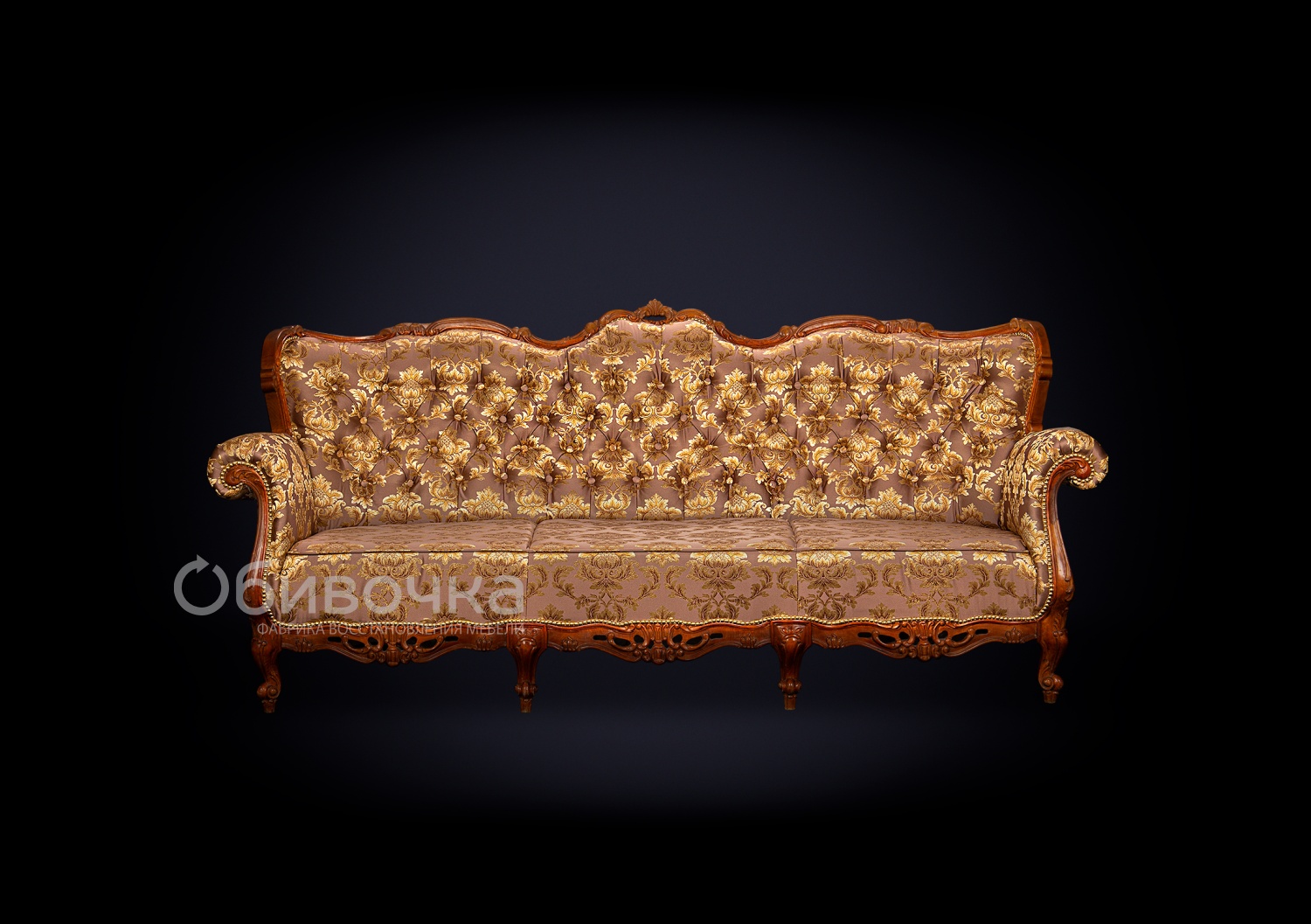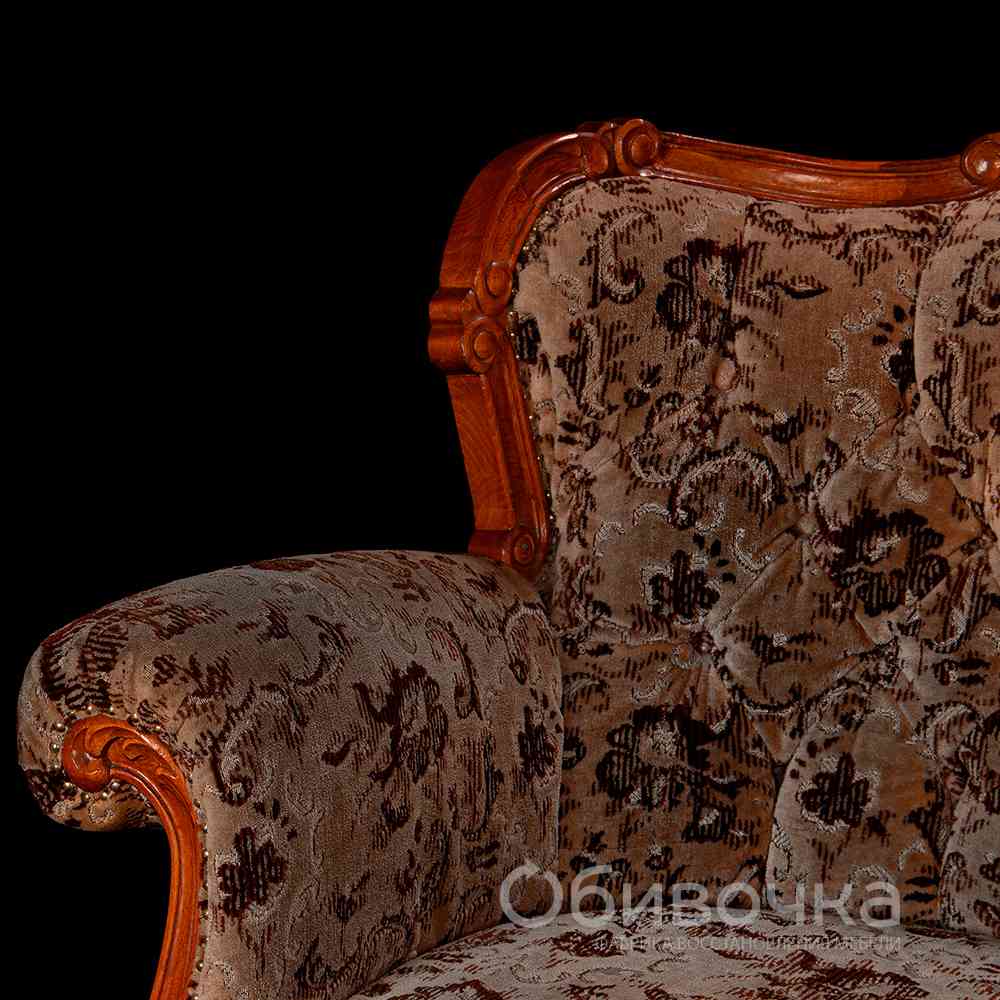 Переобивка классического французского дивана в жаккард