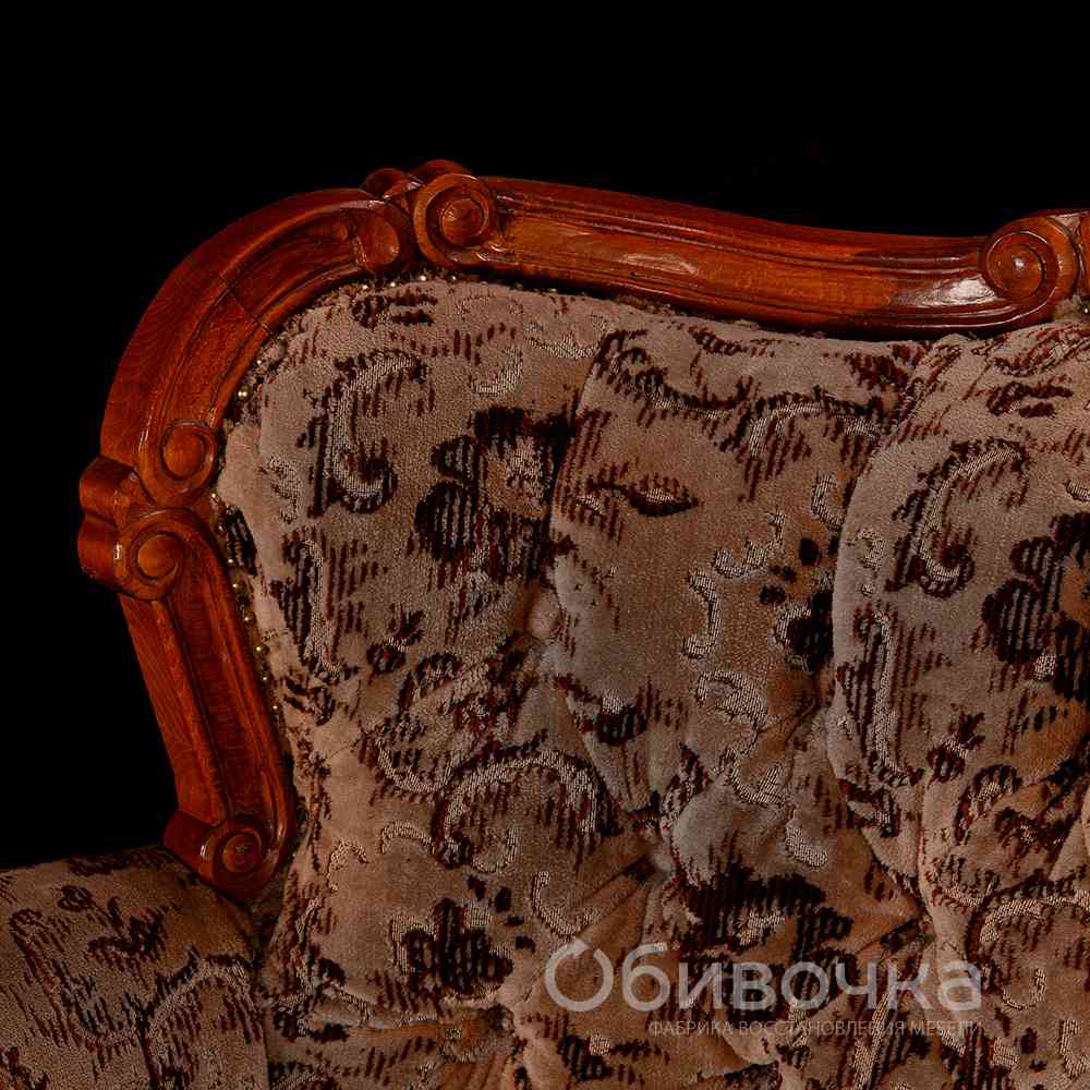Реставрация антикварного дивана с восстановлением каретной стяжки
